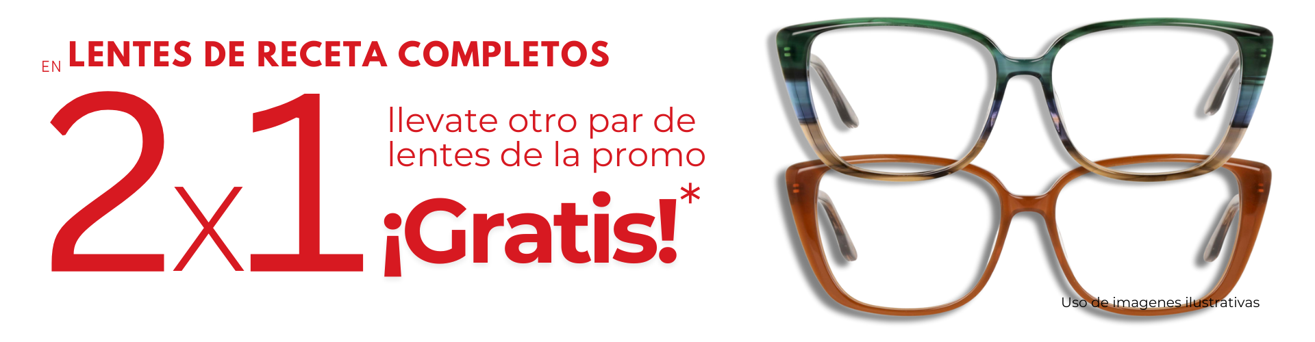 Con la compra de tus lentes de receta completos: Armazón + Cristales, obtené otro lente gratis de la promo.